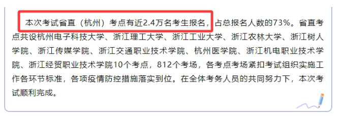而与2022年下半年杭州考区报考的2.4万名考生而言,涨幅也快接近了50%… 当然,如广东考区类似,其同样是受到了地域考生的属性(杭州E类人才)的影响。