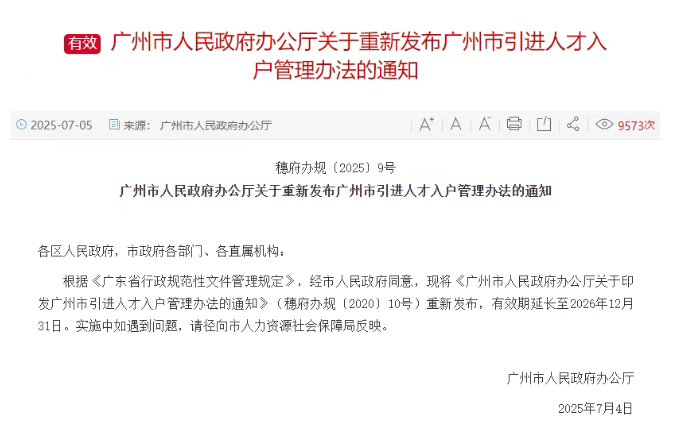 但不巧的是,在前阵子,广州市发改委再次发布了新的入户工作动态,宣布将《广州市人民政府办公厅关于印发广州市引进人才入户管理办法的通知》(穗府办规〔2020〕10号)重新发布,有效期延长至2026年12月31日。
