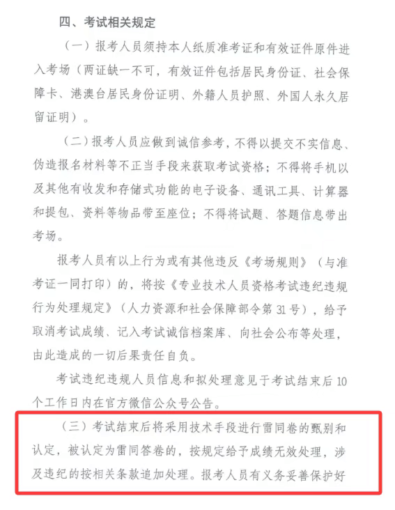 这说明,考试组织方不仅具备技术检测能力,也明确会对 "雷同卷" 进行处理。至于具体判断标准——何为“雷同”、重复率多少算违规——目前尚未公开。