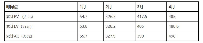 下表给出了某项目2023年1至4月的成本执行数据,其中()适合采取“赶工”的方式来控制项目进度。