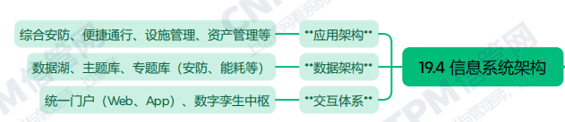 系统规划与管理师第3版教程第十九章智慧园区发展规划第四节主要内容考点涉及:应用架构、数据架构、交互体系等,具体思维导图整理如下: