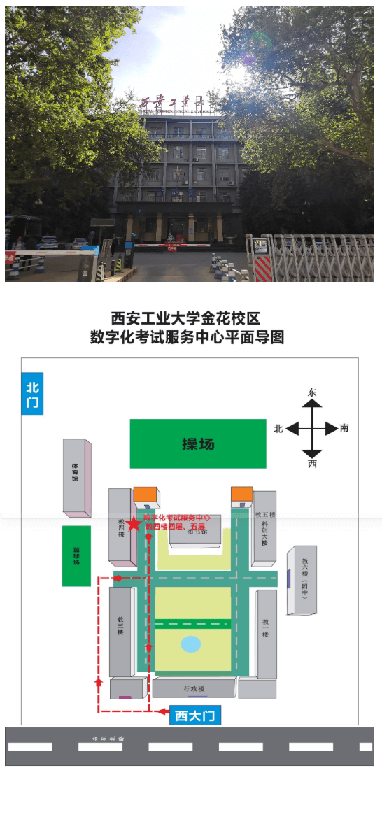 考点地址:西安市碑林区金花北路4号 西安工业大学金花校区教学4号楼(数字化考试服务中心,考生统一从学校西门入校)