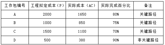 第4个月末,外部审计单位要求依据进度管理计划和成本管理计划进行绩效审查,项目经理组织召开月度控制会议,采集全部已启动并应完成的工作包,得到下表数据(单位:万元)。