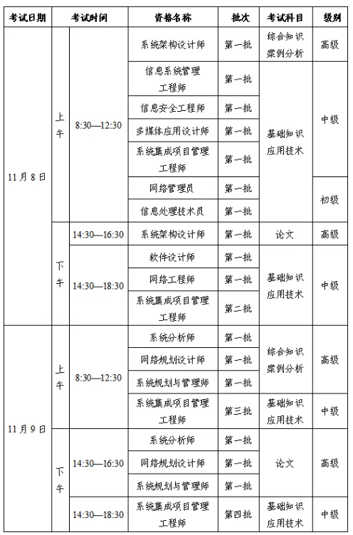 各位考生,2025年下半年计算机技术与软件专业技术资格(水平)考试将于11月8日至9日举行,考试方式为机考。11月3日9:00起可登录中国计算机技术职业资格网(网址https://www.ruankao.org.cn/)打印准考证。