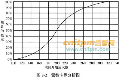 在项目管理中,常常用到的随机变量是与成本和进度有关的变量如价格、用时等。由于实际工作中可以获得的数据量有限,它们往往是以离散型变量的形式出现的。例如,对于某种成本只知道最低价格、最高价格和最可能价格;对于某项活动的用时往往只知道最少用时、最多用时和最可能用时三个数据。经验告诉我们,项目管理中的这些变量服从某些概率模型。现代统计数学则提供了把这些离散型的随机分布转换为预期的连续型分布的可能。可以利用计算机针对某种概率模型轻易进行数以千计、甚至数以万计的模拟随机抽样。项目管理中蒙特卡罗模拟方法的一般步骤是: