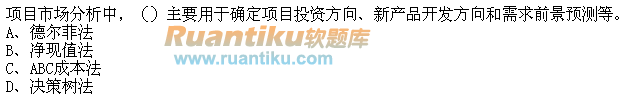 未指定试题:项目市场分析中,()主要用于确定项目投资方向、新产品开发方向和需求前景预测等。A、德尔菲