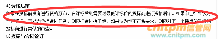 D.如果在投标前没有进行资格预审,在评标后则需要对最低评标价的投标商进行资格后审。如果审定结果认为他有资格、有能力承担合同任务,则应把合同授与他