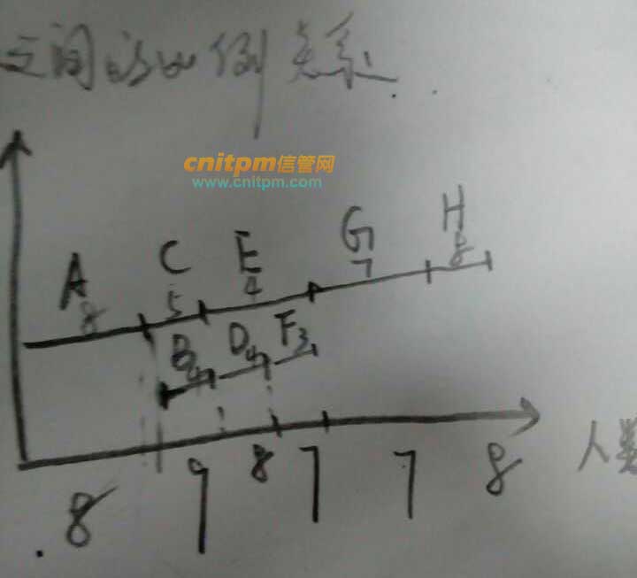 我是这样理解的,A需8个人干2天,结束,干C要5人1天,剩3人干F一天,结束,接着干E4人天,结束,8人,干BD,各4人各1天,完事,干G7人两天,完事干H8人一天