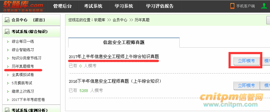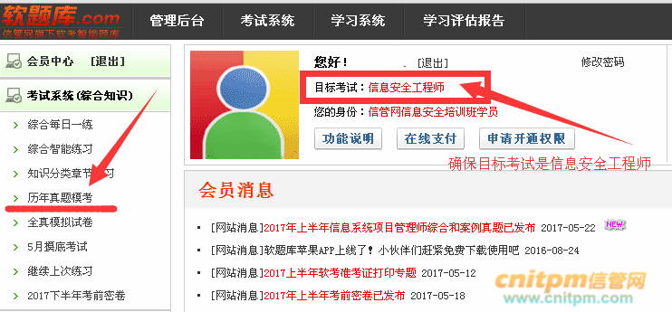 注:确保你登录的帐号目标考试是信息安全工程师!如果不是请重新注册帐号