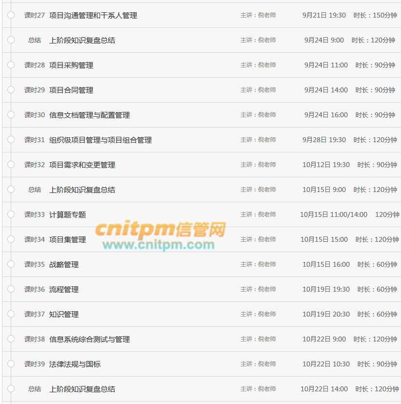 2017年下半年信息系统项目管理师直播课程表