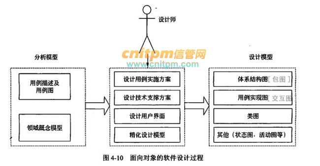 面向对象的分析模型主要由顶层架构图、用例与用例图、领域概念模型构成;设计模型则包含以包图表示的软件体系结构图、以交互图表示的用例实现图、完整精确的类图、针对复杂对象的状态图和用以描述流程化处理过程的活动图等。为完成这一转换过程,设计人员必须处理以下任务: