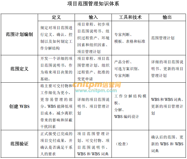 信息系统项目管理师考试重点:项目范围管理知识体系