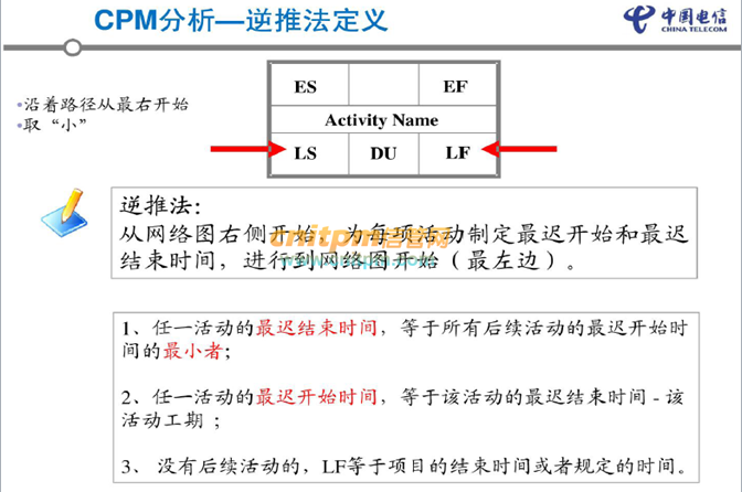 使用逆推法计算最迟开始日期(LS),最迟结束日期(LF),