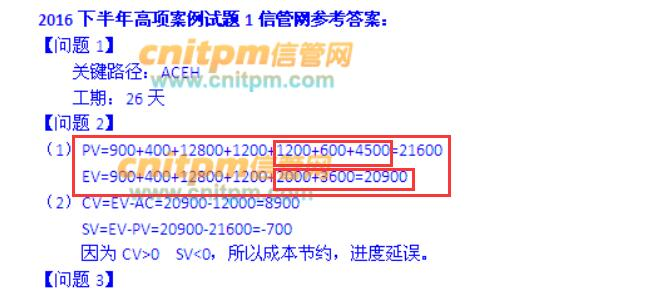 (2)请判断次时项目的成本偏差(CV)和进度偏差(SV),以及成本和进度执行情况