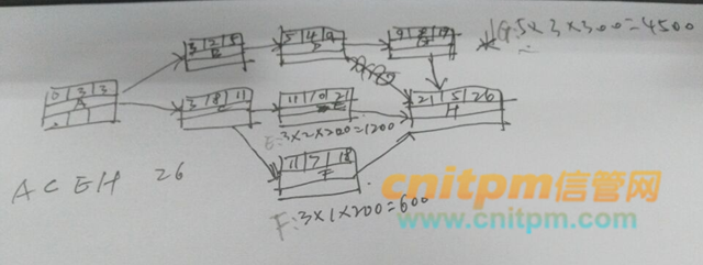 比如E最早开始时间为11,第十四天该计划的就是E需要完成3天,3天的话需要2个人共同完成一个人200一天,3天就是1200