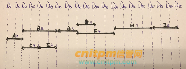 已知某信息工程项目由A到I共9个活动组成,项目组根据项目目标,特别是工期要求,经过分析、定义及评审,给出了该项目的活动历时。活动所需资源及活动逻辑关系列表,如下表所示: