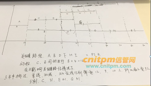 图我能画出来,就是不知道项目所需人数最少是怎样计算出来,有知道的同学,麻烦解答下。谢谢