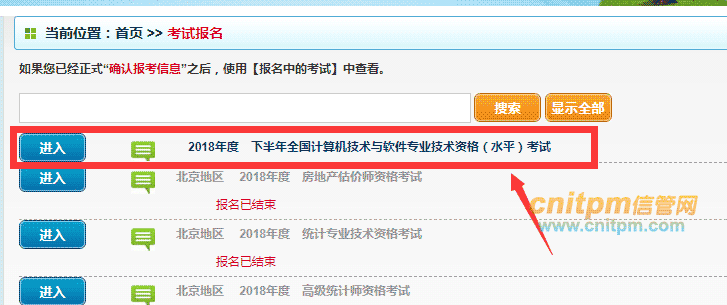 5、点击“2018年度 下半年全国计算机技术与软件专业技术资格(水平)考试 ”进入按钮