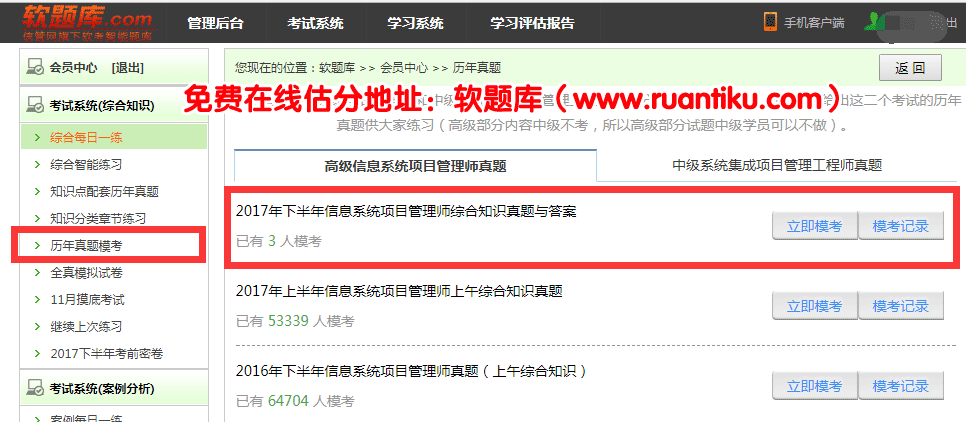 软题库免费估分地址:http://www.ruantiku.com/user/