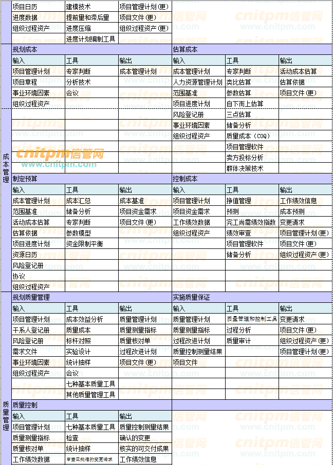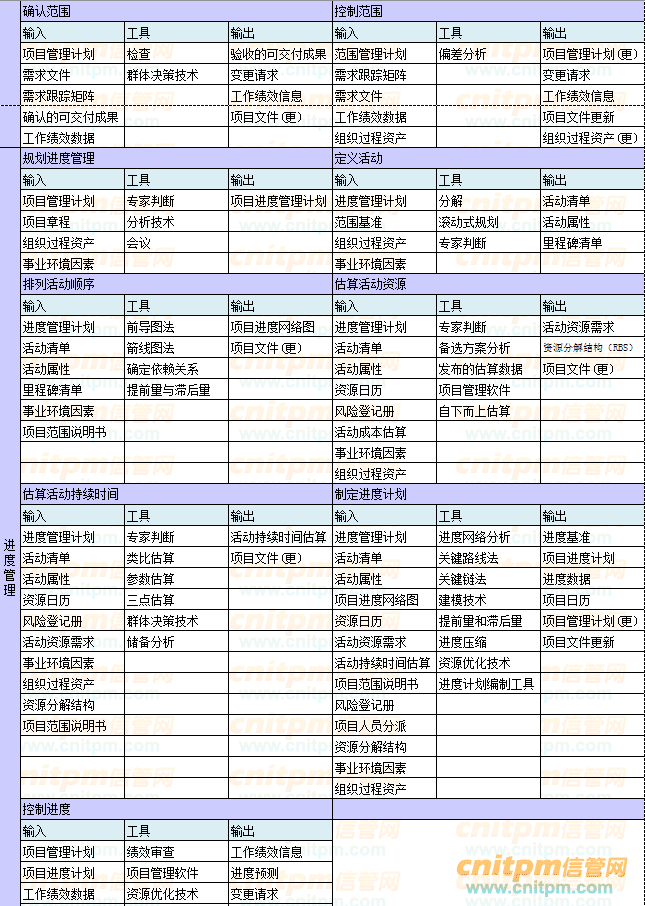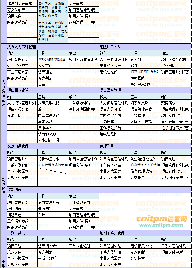 点击下载:高项第3版教程itto-10大管理47过程输入输出工具汇总表(最新版)PDF
