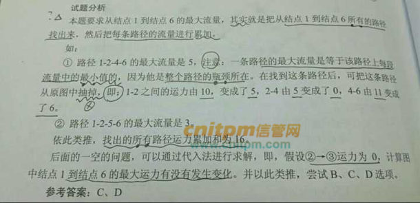 一枝笑(fzyzx.cn) 10:42:32@光影捕手 你有没有考PMP光影捕手(fzyzx.cn) 10:42:45没有金剩无(fzyzx.cn) 10:42:55第一步先算最大流量。。。。一枝笑(fzyzx.cn) 10:43:14听说那个容易好多,考试都是选择题沉默(fzyzx.cn) 10:43:24找路径 断最小流量 最终起点到终点全部断完 流量值累加就行了沉默(fzyzx.cn) 10:43:26这种题目不难光影捕手(fzyzx.cn) 10:43:54@一枝笑 奔职称考的,那个考了没用 沉默(fzyzx.cn) 10:44:27题目没截全 第二问不知道问的啥光影捕手(fzyzx.cn) 10:50:25@沉默 怎么断法?能否详解下 金剩无(fzyzx.cn) 10:50:32 第二问不用计算,直接看图可以得出,