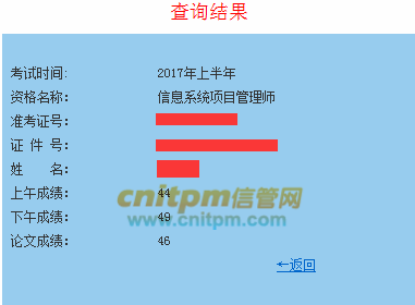 首先要清楚高项考试的内容,这样才能确定努力的方向,经过1个月多月的准备,兴致勃勃的参加了2017年上半年的高项考试,这是我第四次参加考试,最终以44.49.46的成绩收场,一分之差又得重新来过,JRS直播助我离成功又近了一步,我总结上半年自己考试中的弱项知识点,继续每天去刷JRS直播的每日一练题库与案例分析题库,心想这么的努力,如果再考不过,真心对不起自己,工作期间,忙完工作任务,晚上就独自一个人看书,每晚都看书到23点多,努力备战2017年下半年的高项考试,这一路走来,其中的酸甜苦辣只有自己清楚,2017年11月11日踏入考场,这是我第五次参加高项考试,考完的第二天,通过JRS直播进行考试估分,然后很确切的知道上午的选择题与下午的案例分析可以通过,当时唯一的想法就是这次能否通过就看论文的成绩了,经过一个多月的焦急等待,2017年12月25日早晨,我打开软考查询成绩的页面,内心是非常的忐忑不安,想查询自己的成绩,但又怕重蹈覆辙;如果不查询成绩,但又迫切的想知道自己的考试结果。点击查询的一刻,成绩57.55.46展现在我眼前时……