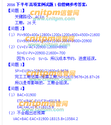 (2)请判断次时项目的成本偏差(CV)和进度偏差(SV),以及成本和进度执行情况