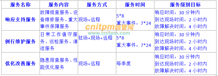 (3)在现场支持服务中,乙方应保证在30分钟内响应服务请求,2小时内到达甲方现场,4小时内排除故障并恢复服务,重大事件保障期间7X24小时值守;