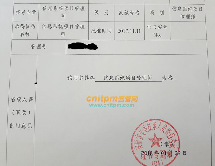 安徽2018年信息系统项目管理师职称部门意见及公章