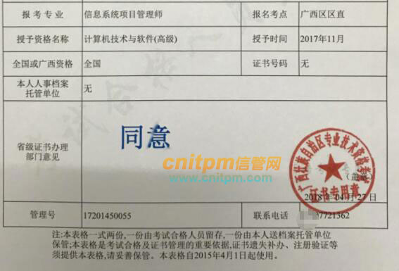 2018年广西信息系统项目管理师人事部门意见及公章,广西信息系统项目管理师职称证书,广西信息系统项目管理师合格人员登记表