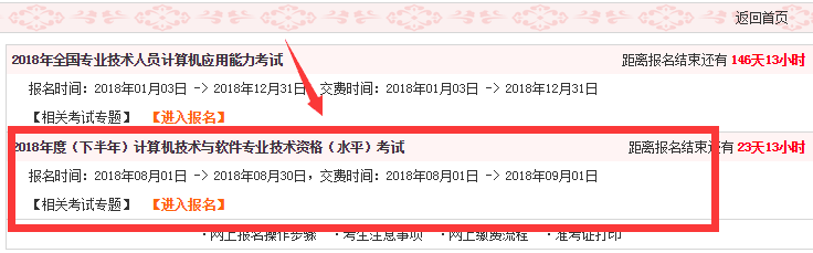 下半年计算机技术与软件专业技术资格(水平)考试的报名时间统一定于2018年8月1日至8月30日。