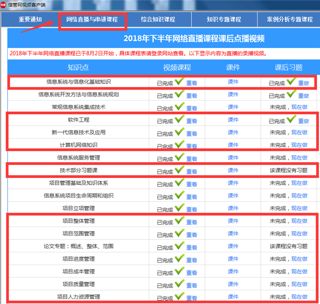 如果您还没有按进度完成直播课程的学习,请至少将以下重要知识点的视频看一遍,并完成课后习题练习。