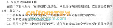 范围控制的目的是监控项目的状态,如“项目的工作范围状态和产品范围状态”,范围控制不涉及()。