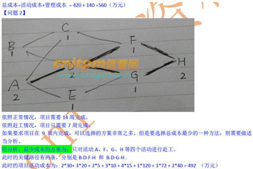 如果关键路径不变就是ADFH关键路径可变就是ADGH成本少