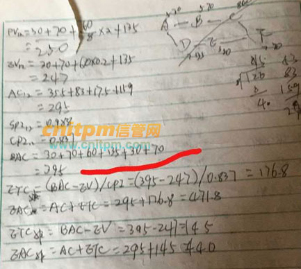 由于到第12周末的时候实际成本AC=295,已经把开始和第10周的投入295万全部用完了,所以实际上从第13周到第15周都是处于停工状态。