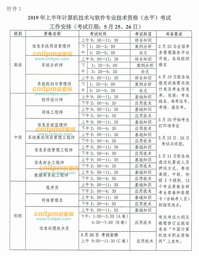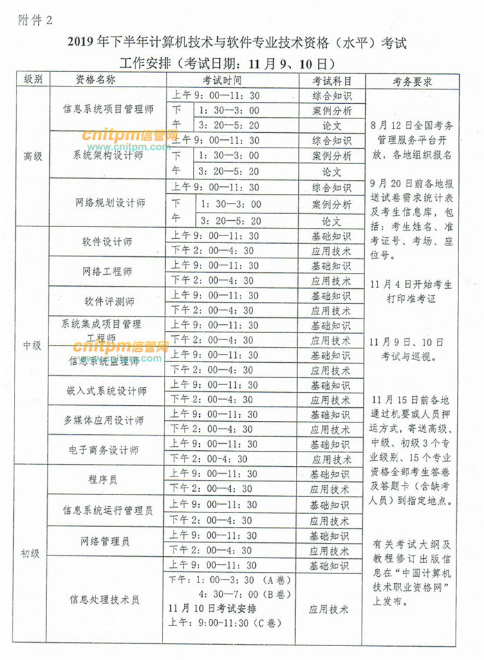 2019年度计算机技术与软件专业技术资格(水平)考试工作安排的通知