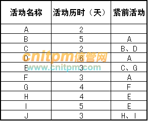 某信息系统项目包含如下十个活动。各活动的历时、活动逻辑关系如下表所示: