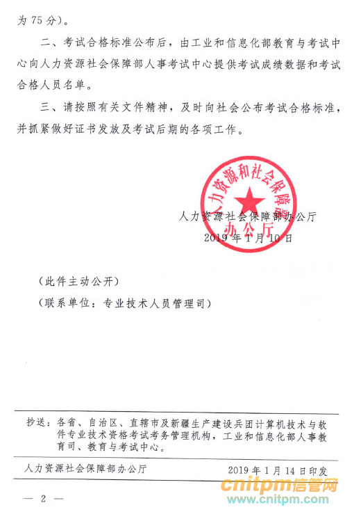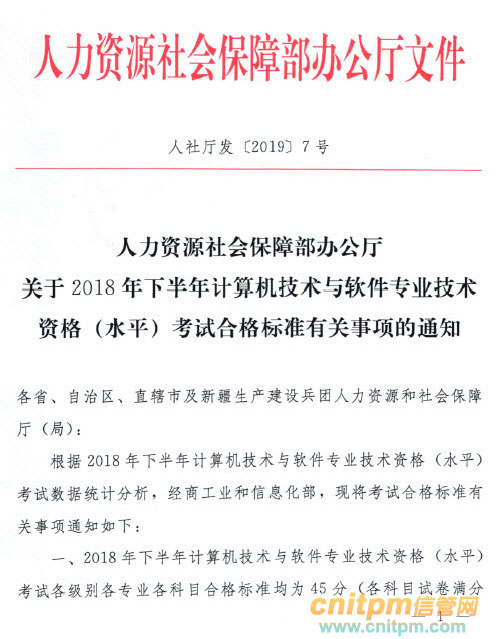人力资源社会保障部办公厅关于2018年下半年计算机技术与软件专业技术资格(水平)考试合格标准有关事项的通知