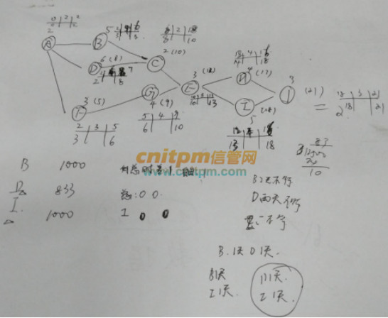 其中路径ABCEIJ也是20天,我压缩B一天,增加2000