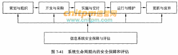 如图7-41所示,系统生命周期内的安全保障和评估应该贯穿下列各阶段: