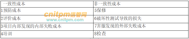 3.质量规划阶段需要考虑质量成本的因素, 质量成本是项目总成本的一个组成部分, 因此张工建立了如下表格, 以区分一致性成本和非一致性成本 。