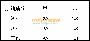 66、67、某炼油厂根据计划每季度供应合同单位汽油和煤油各16吨。该厂从甲乙两处场地运回原油提炼。一直两处原油成分如下表所示,且甲乙两地采购成本分别为200元/吨和300元/吨。对于该炼油厂,需要从乙采购()吨方能使此次采购的成本最低,最低的采购成本是()元。