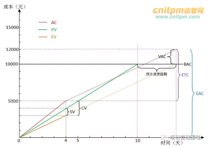 这种情况下用图更直观地表示ETC、EAC等就是如下图所示(此时VAC为0无法表示出来):