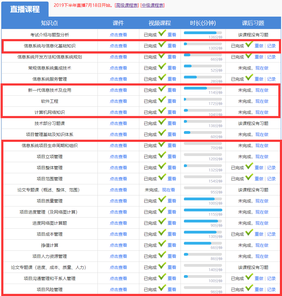 如果您还没有按进度完成直播课程的学习,请至少将以下重要知识点的视频看一遍,并完成课后习题练习。视频可以快进看一遍,重点放做题上。