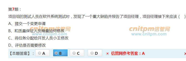 项目组的测试人员在软件系统测试时,发现了一个重大缺陷并报告了项目经理,项目经理接下来应该( )