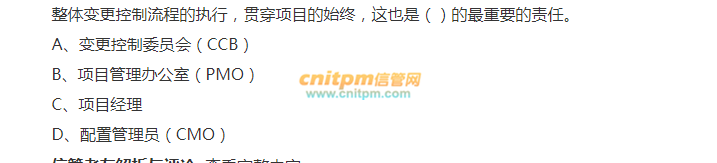 整体变更控制流程的执行,贯穿项目的始终,这也是()的最重要的责任。