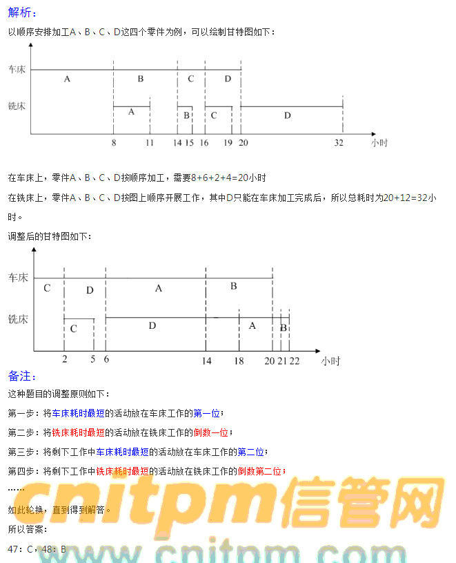 那么车床要先开工,为了让先床少等待,那么只有c先开工