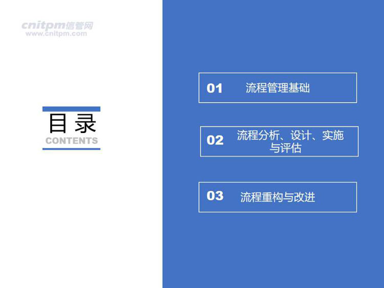 课程内容:流程管理基础;流程分析、设计、实施与评估;流程重构与改进