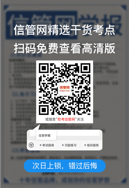JRS直播学报由专注信管10年的JRS直播编辑整理,精挑细选系统集成项目管理工程师干货考点,包含知识点集锦和配套习题,只需扫码关注JRS直播微信公众号即可免费查看当日学报。