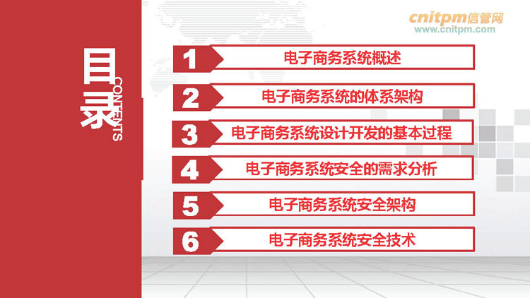 课程内容:电子商务系统概述、电子商务系统的体系架构、电子商务系统设计开发的基本过程、电子商务系统的需求分析、电子商务系统安全架构、电子商务系统安全技术